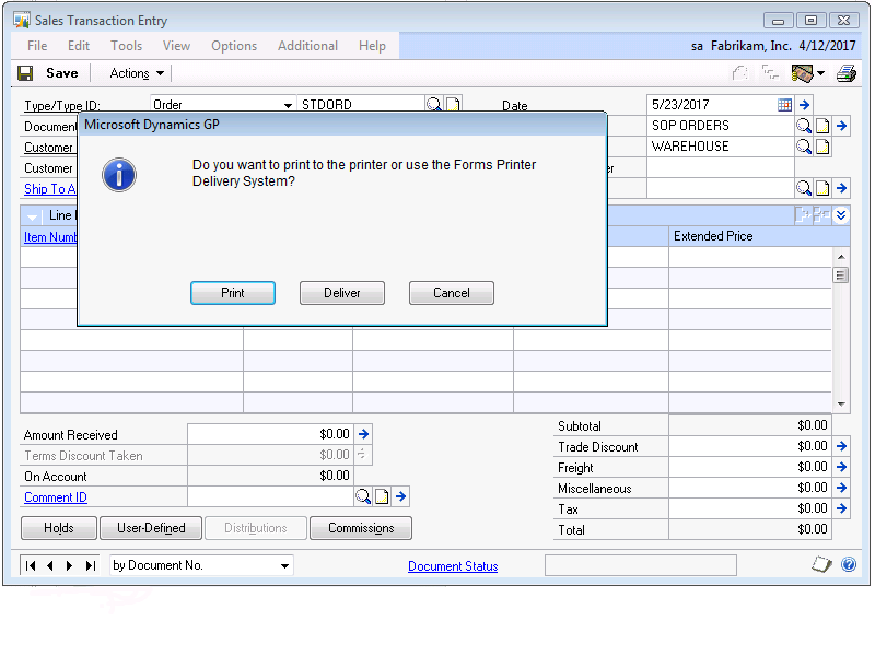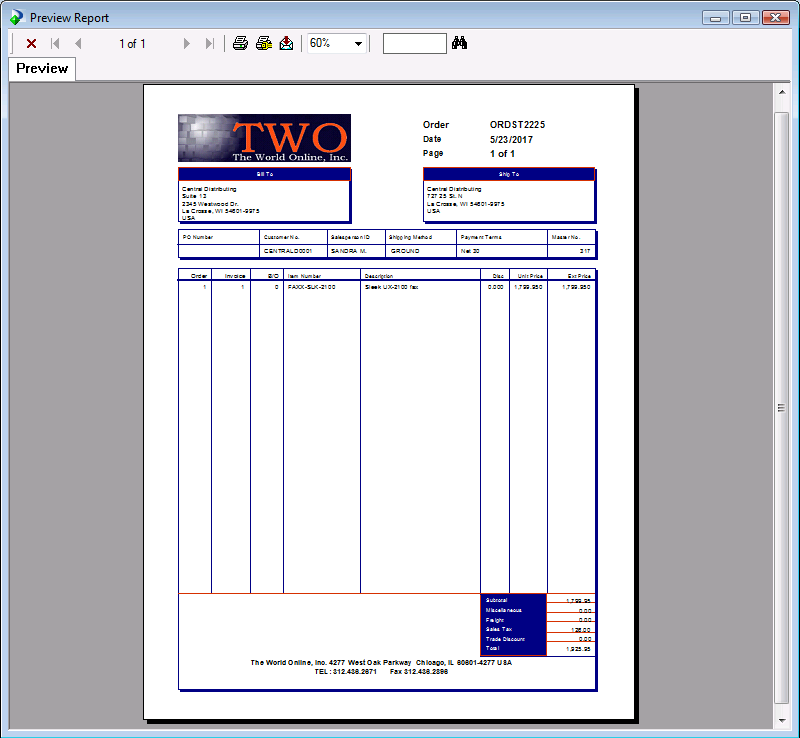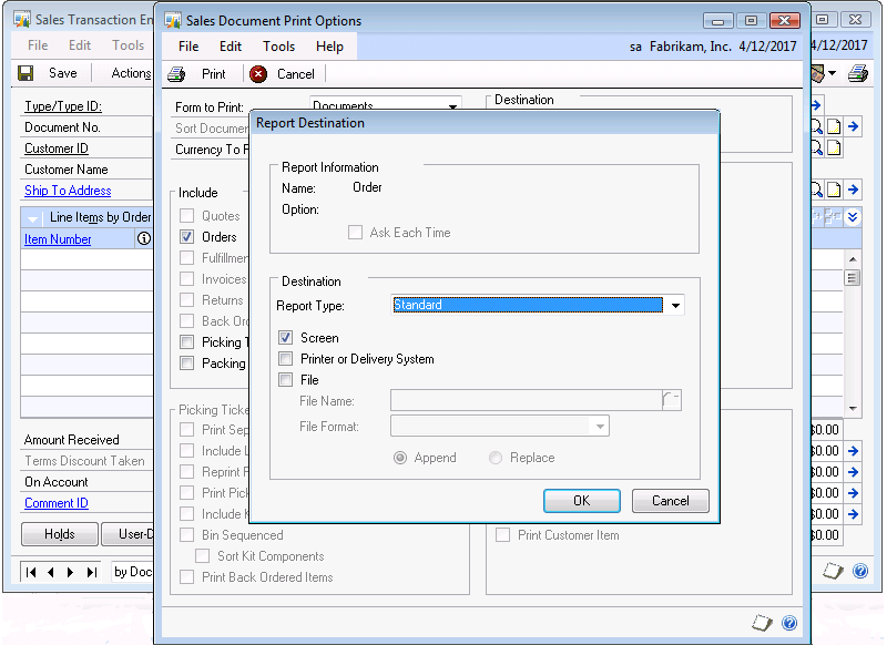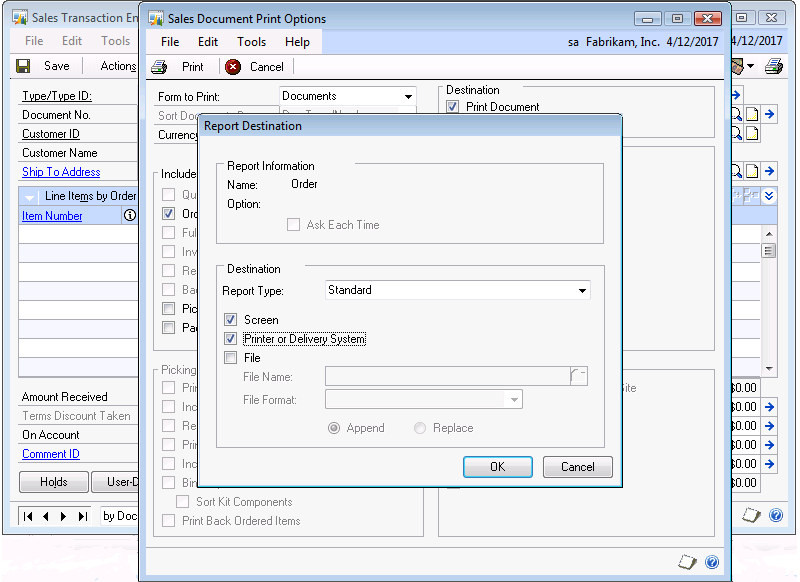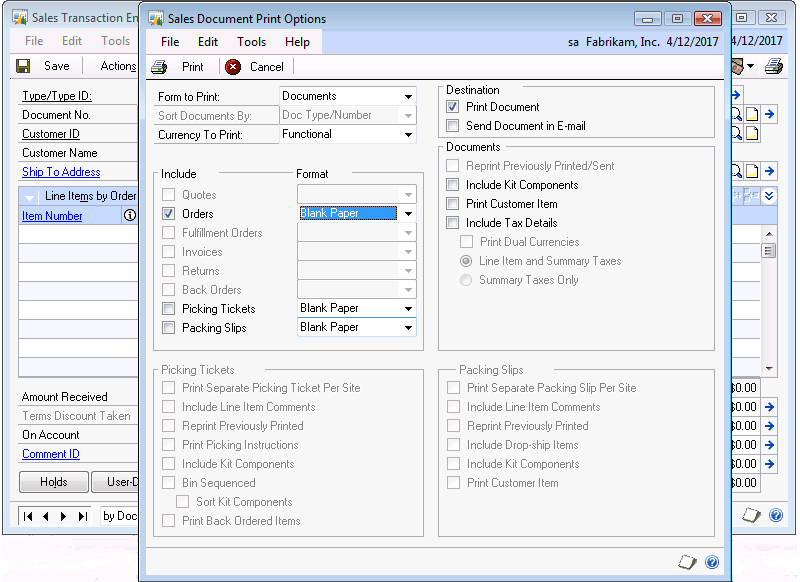Forms Printer lets users print from the windows they already know and use. Transaction Entry, Inquiry, Range, Batch, and List windows are all integrated with Forms Printer.