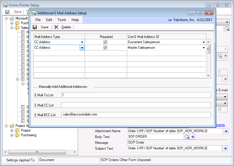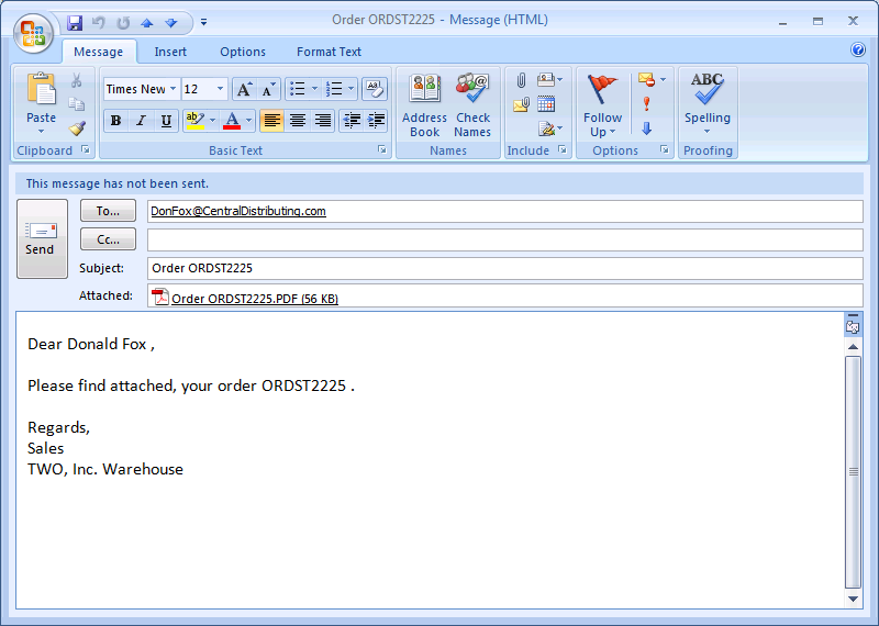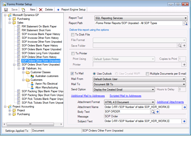 Emails containing reports created by Forms Printer can be configured to be displayed, sent immediately, saved to Drafts, or delay sent.
