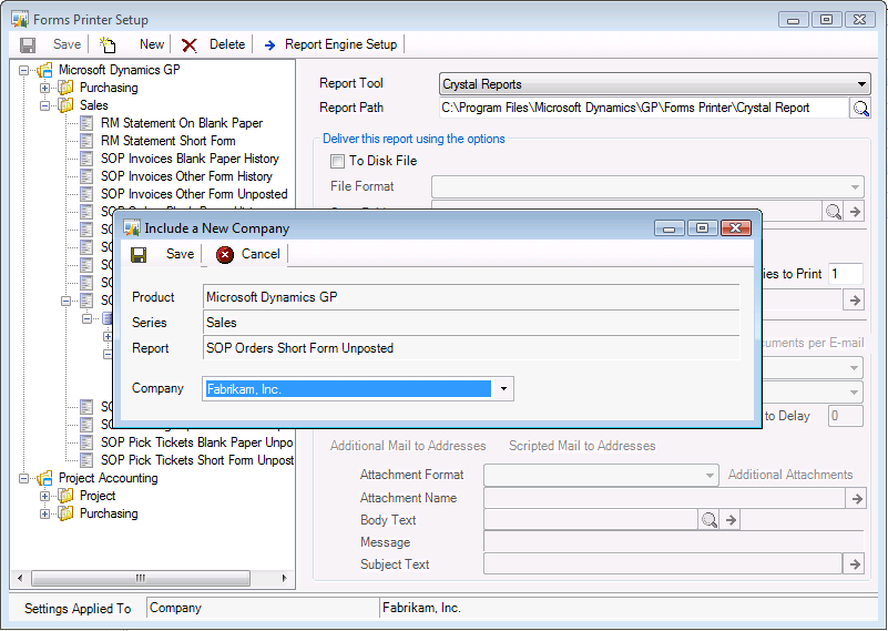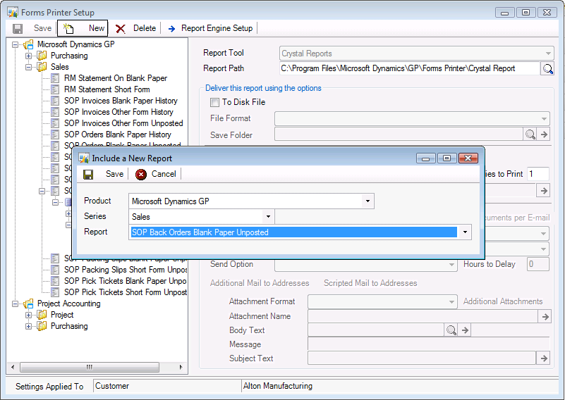 Maintenance of reports is easy, with only the reports you need added to the Setup list. Add reports to Forms Printer using the New Report window.